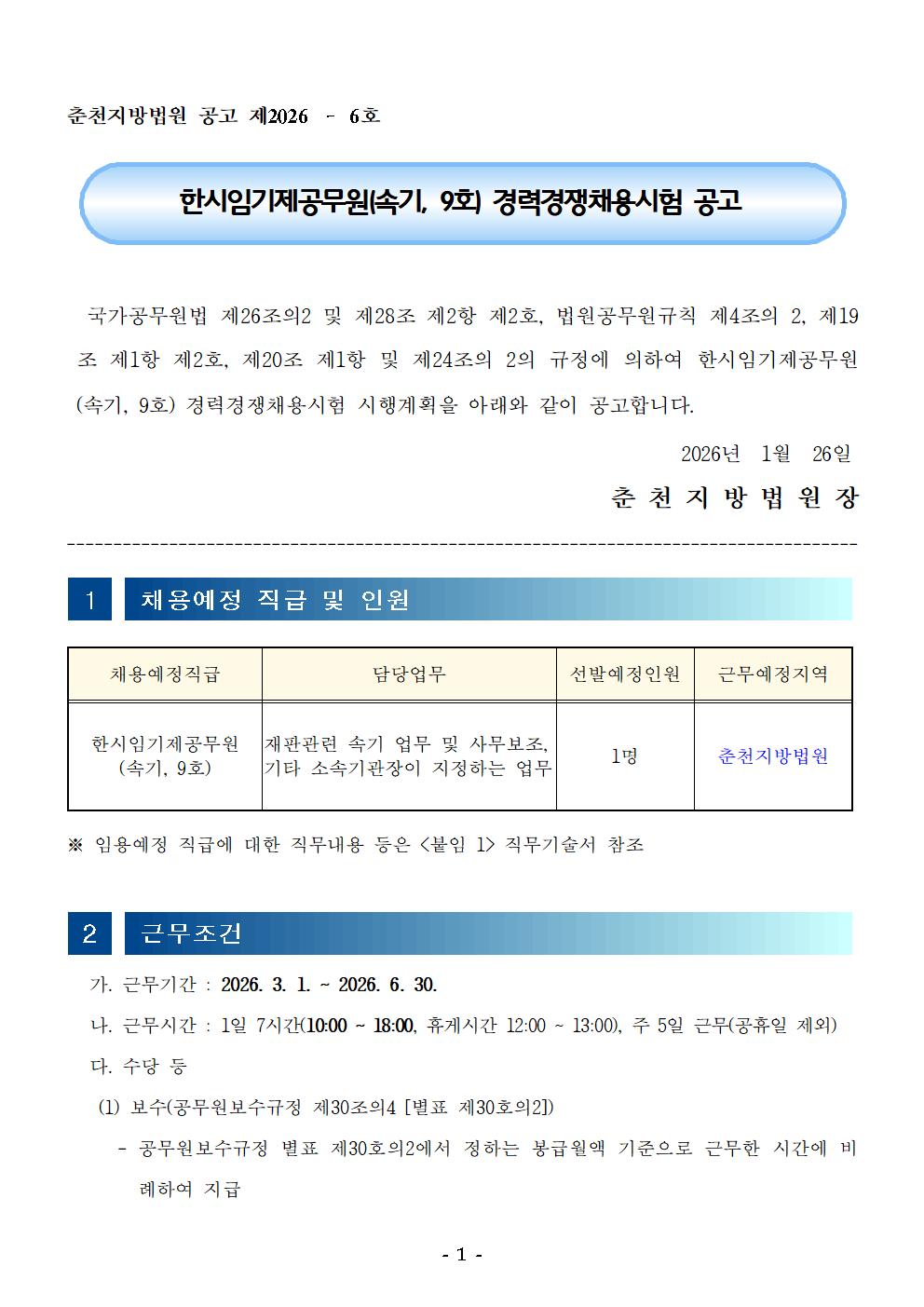 공지사항 채용공고 속기동향 자주묻는질문 CAS 키보드 A/S 커뮤니티 - 공지사항 - 채용공고 - 속기동향 - 자주묻는질문 - CAS 키보드 A/S 2026.02.04 14:58 [채용] 춘천지방법원 한시임기제공무원(속기) 경력경쟁채용시험 공고 (마감) 조회 수 142 ? 단축키 Prev이전 문서 Next다음 문서 크게 작게 위로 아래로 댓글로 가기 인쇄 클릭하여 첨부파일 다운로드 한시임기제공무원(속기, 9ȣ) 경력경쟁채용시험 공고.hwp 응시원서, 경력채용이력서, 개인정보수집이용동의서, 자기소개서, 직무수행계획서 등(양식).hwp [채용] 홍성군의회 기간제근로자 채용계획 공고 (진행) 2026.02.02by Facebook Twitter Google Pinterest 이전 다음 위로 아래로 댓글로 가기 인쇄 ✔댓글 쓰기 에디터 선택하기 ✔ 텍스트 모드 ✔ 에디터 모드 ? 댓글 쓰기 권한이 없습니다. 로그인 하시겠습니까? 제목+내용제목내용댓글닉네임아이디태그 검색 List of Articles 번호 제목 날짜 조회 수 » [채용] 춘천지방법원 한시임기제공무원(속기) 경력경쟁채용시험 공고 (마감) 2026.02.04 142 3360 [채용] 홍성군의회 기간제근로자 채용계획 공고 (진행) 2026.02.02 150 3359 [채용] 연세대학교 장애학생지원센터 교육속기사 모집 안내 (마감) 2026.01.30 40 3358 [채용] 서울대학교 장애인학생지원센터 전문교육지원인력(속기사) 채용 공고 (마감) 2026.01.28 174 3357 [채용] 경상북도 소재 공공기관 임시속기사 채용 공고 (마감) [협회 추천] 2026.01.27 41 3356 [채용] 사천시의회 한시임기제공무원(속기) 임용시험 계획 재공고 (마감) 2026.01.27 161 3355 [채용] 서대문구의회 기간제근로자(속기보조) 채용공고 (마감) 2026.01.20 194 3354 [채용] 청주지방법원 전문임기제공무원 속기사 경력경쟁채용시험 공고 (진행) 2026.01.20 167 3353 [채용] 대전지방법원 전문임기제공무원(속기) 경력경쟁채용시험 공고 (마감) 2026.01.19 143 3352 [채용] 대검찰청 기간제근로자(속기) 채용시험 시행계획 공고 (마감) 2026.01.19 148 3351 [채용] 중앙해양안전심판원 기간제 근로자(속기) 채용 공고 (마감) 2026.01.19 131 3350 [채용] 영등포구의회 기간제근로자(속기) 채용 공고 (마감) 2026.01.19 169 3349 [채용] 광주지방법원 전문임기제공무원(속기) 경력경쟁치용시험 시행계획 공고 (마감) 2026.01.15 212 3348 [채용] 대구광역시동구의회 한시임기제공무원(속기) 경력경쟁임용시험 공고 (마감) 2026.01.14 91 3347 [채용] (주)한국스테노 회의록 작성 프리랜서 속기사(재택근무) 모집 (마감) 2026.01.14 314 3346 [채용] 울산지방법원 한시임기제공무원(속기) 경력경쟁채용시험 공고 (마감) 2026.01.14 90 3345 [채용] 인천광역시의회 기간제근로자(속기) 채용 공고 (마감) 2026.01.14 126 3344 [채용] 대구고등법원 속기서기보 경력경쟁채용시험 시행 공고 (마감) 2026.01.14 153 3343 [채용] 사천시의회 한시임기제공무원(속기) 임용시험 계획 공고 (마감) 2026.01.13 101 3342 [채용] 창원시의회 한시임기제공무원(속기) 임용시험 계획 공고 (마감) 2026.01.13 98 Board Pagination Prev 1 2 3 4 5 6 7 8 9 10 ... 169 Next / 169 GO